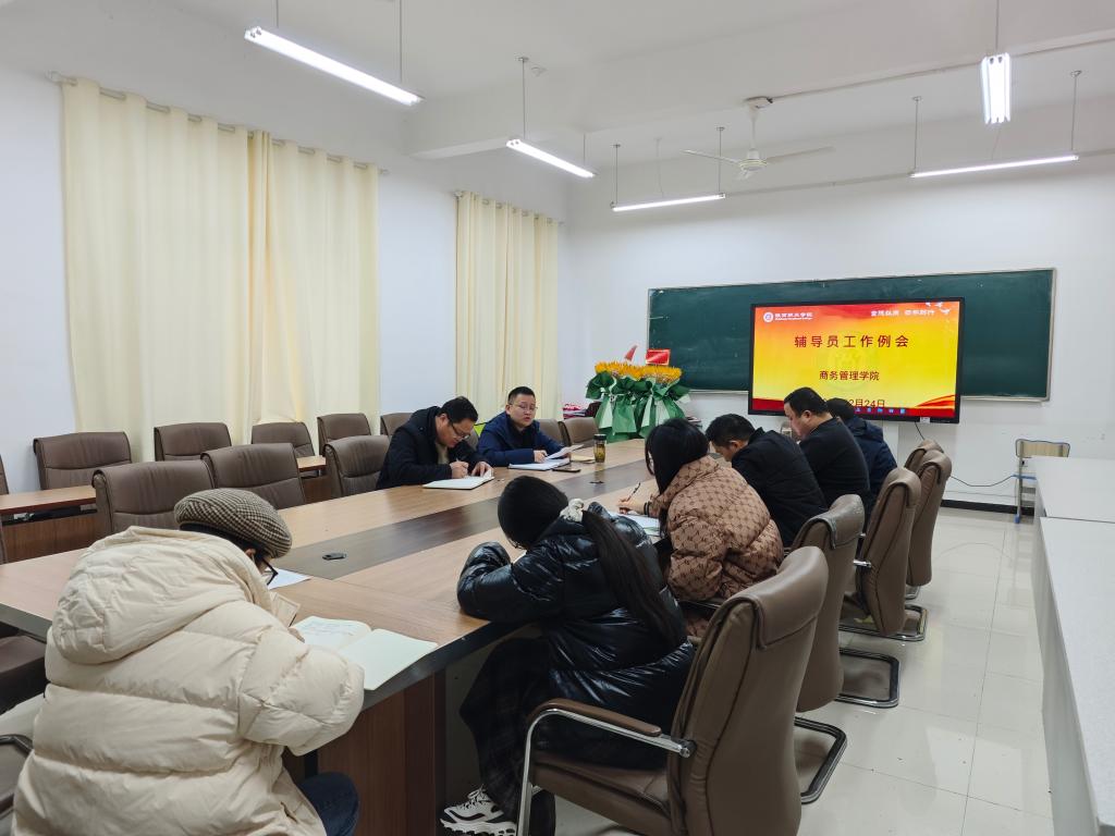 12月24日上午,商务管理学院在学院会议室召开了辅导员工作会议。学院党总支副书记(主持工作)时军林、党总支副书记鲍骏、团总支书记李文、学工干事及全体专兼职辅导员参会,会议由鲍骏主持。