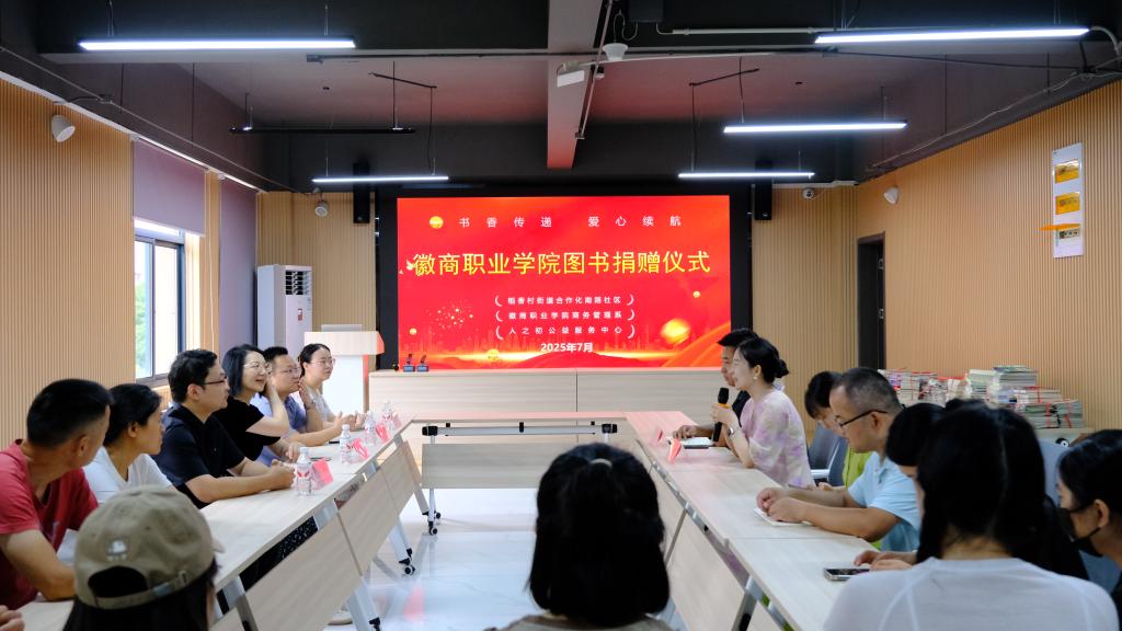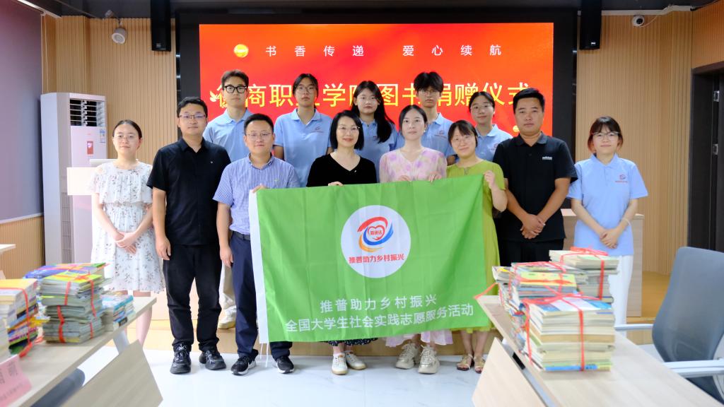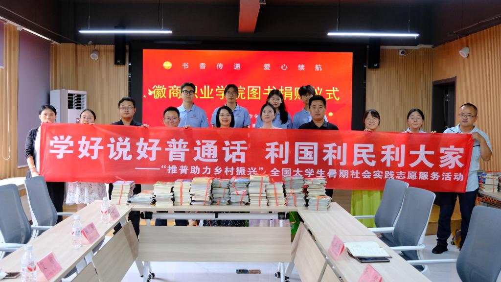 随后,实践队举行了隆重的普通话书籍和儿童读物捐赠仪式。合作化南路社区党委副书记沈文友、合作化南路社区站长李琴、商务管理系党总支书记艾敏、党总支副书记鲍骏、团总支书记李文以及实践队的全体师生都出席了捐赠仪式。在仪式上,实践队的代表将一摞摞整齐的书籍交到了社区负责人手中。