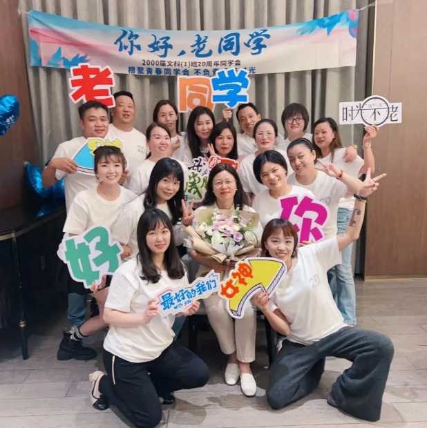 2023年10月的一个周末晚上,刚刚参加完学校活动的我驱车赶往滨湖,一路上微信群的信息提示音不停作响,一整列排列整齐的信息在不停闪动:“老师您来了吗?”“老师我们一直在等您!”“老师您路上注意安全!”……当我终于停好车乘坐电梯上楼在电梯门打开的刹那,几张大大的笑脸已在门外绽放,瞬间一大束鲜花被送到了我怀里,在一群高高大大壮壮实实的身影保护下我被簇拥着进入了灯光璀璨的宴会厅,耳边此起彼伏响起“姚老师好!”“老师您终于来了!”“老师您还记得我吗?”的呼声。看着眼前几十张熟悉又有些陌生的笑脸,我有些恍惚,这是我带过的孩子们呀,真的都长大了!