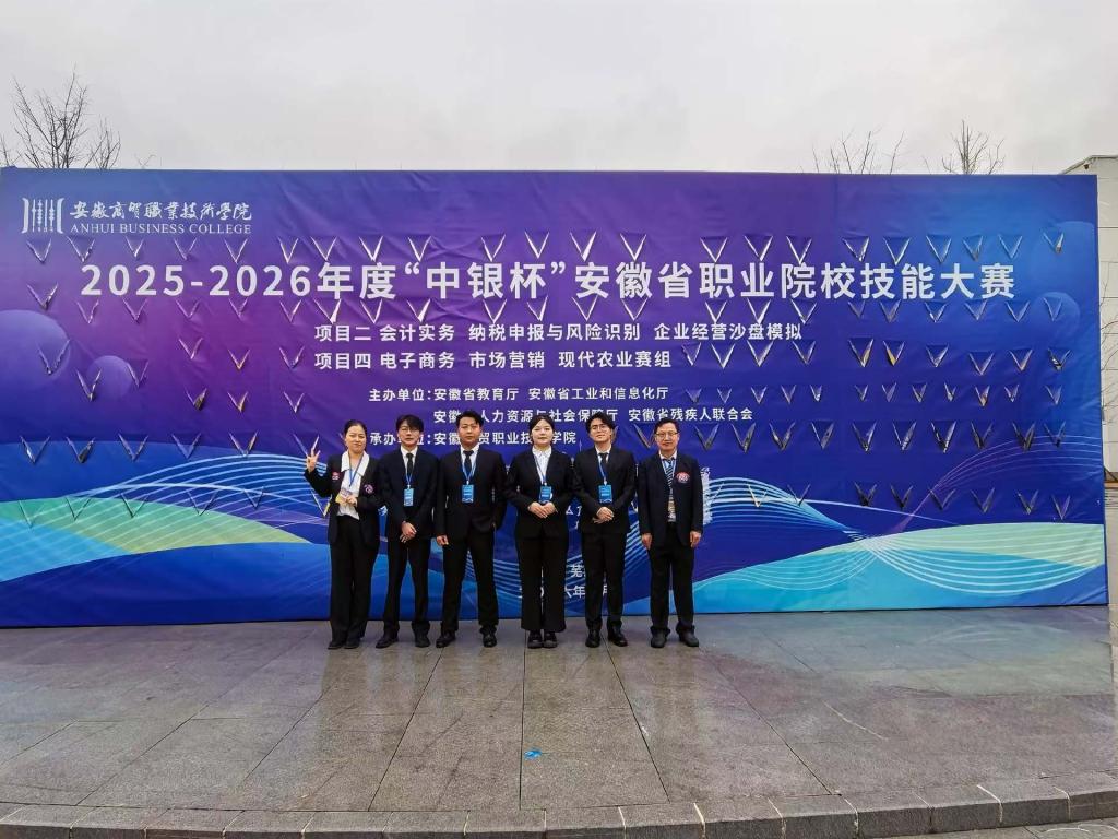 该赛项由安徽省教育厅、安徽省经济和信息化厅、安徽省人力资源和社会保障厅等主办。比赛内容分为两大模块:技能实操模块和现场汇报展示。技能实操模块紧扣企业数字化转型与数智化运营趋势,采用全流程仿真商业对抗模式。参赛团队分设人力、财务、生产、营销等岗位,在仿真模拟的市场环境中,完成战略规划、产品研发、生产调度、市场营销、现金流管控等多年度经营决策,全面考核选手的数据分析、协同作战与临场应变能力。现场汇报展示模块,深度对标世界技能大赛标准,全面考核参赛队伍的技能应用能力与综合素养。备赛期间,在校、院两级领导的大力支持与悉心指导下,参赛团队迎难而上、凝心聚力、刻苦训练,最终在省赛中再创佳绩。