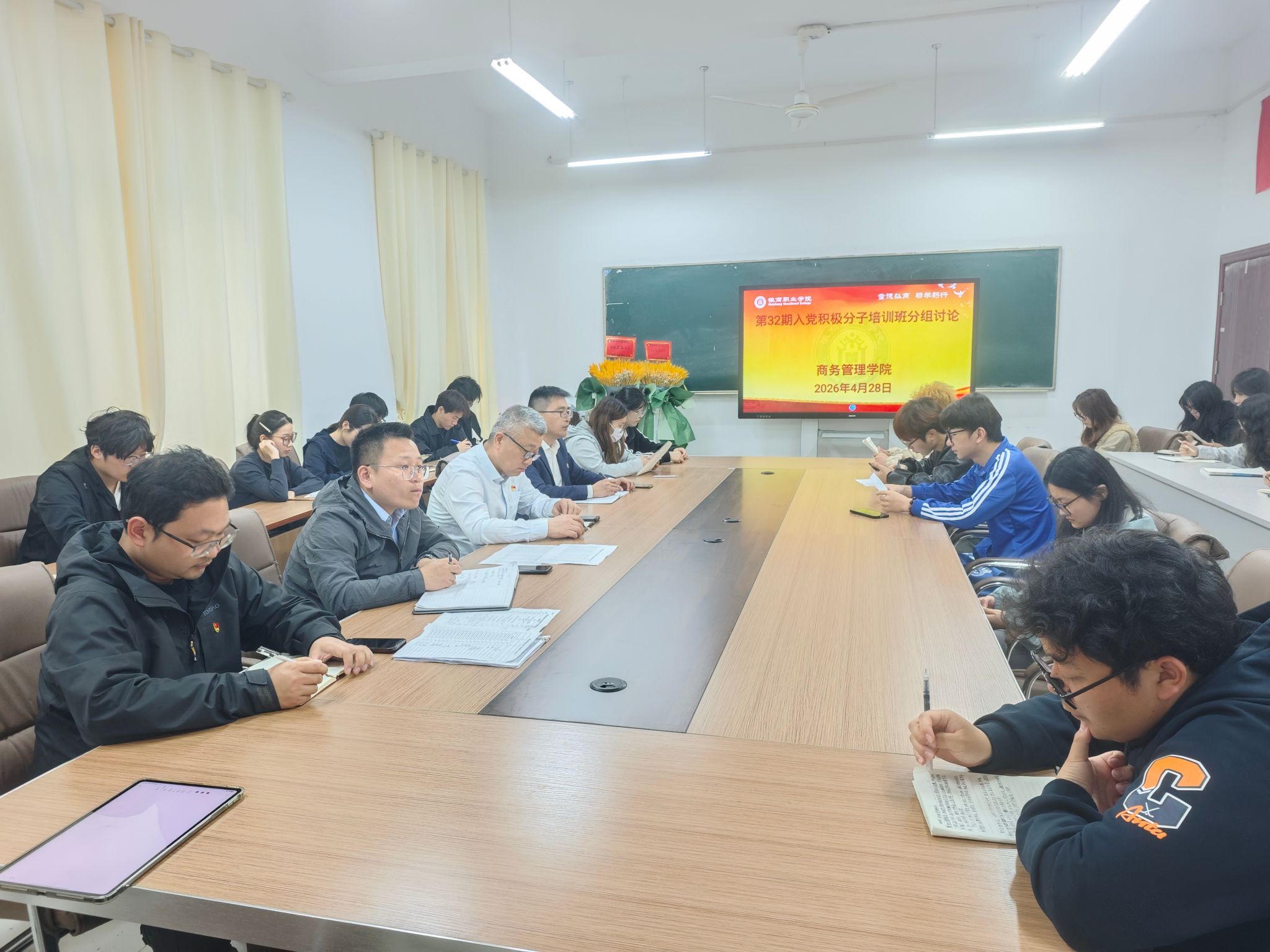 为加强入党积极分子教育培养,提升其思想政治素质,按照学校第32期入党积极分子培训班教学计划安排,4月28日中午,商务管理学院学生党支部在学院会议室召开入党积极分子培训班分组研讨会。学院党总支书记孙华、副书记鲍骏,学生党支部教师代表及30名入党积极分子参会。